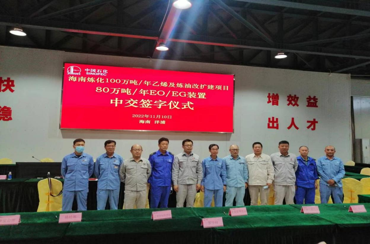 2022年11月10日,海南炼化100万吨/年乙烯及炼油改扩建项目80万吨/年EO/EG主装置实现了高标准中交,标志着本装置从工程建设阶段全面转为生产试运行阶段。